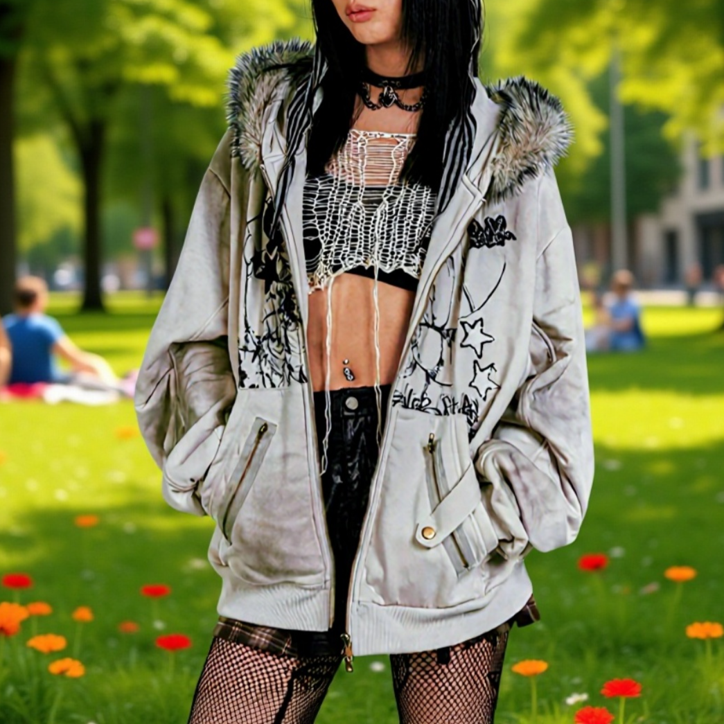 ● レトロアメリカンデザインと可愛いうさ耳フードが魅力的な、秋冬にぴったりの裏起毛パーカーです。